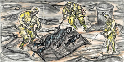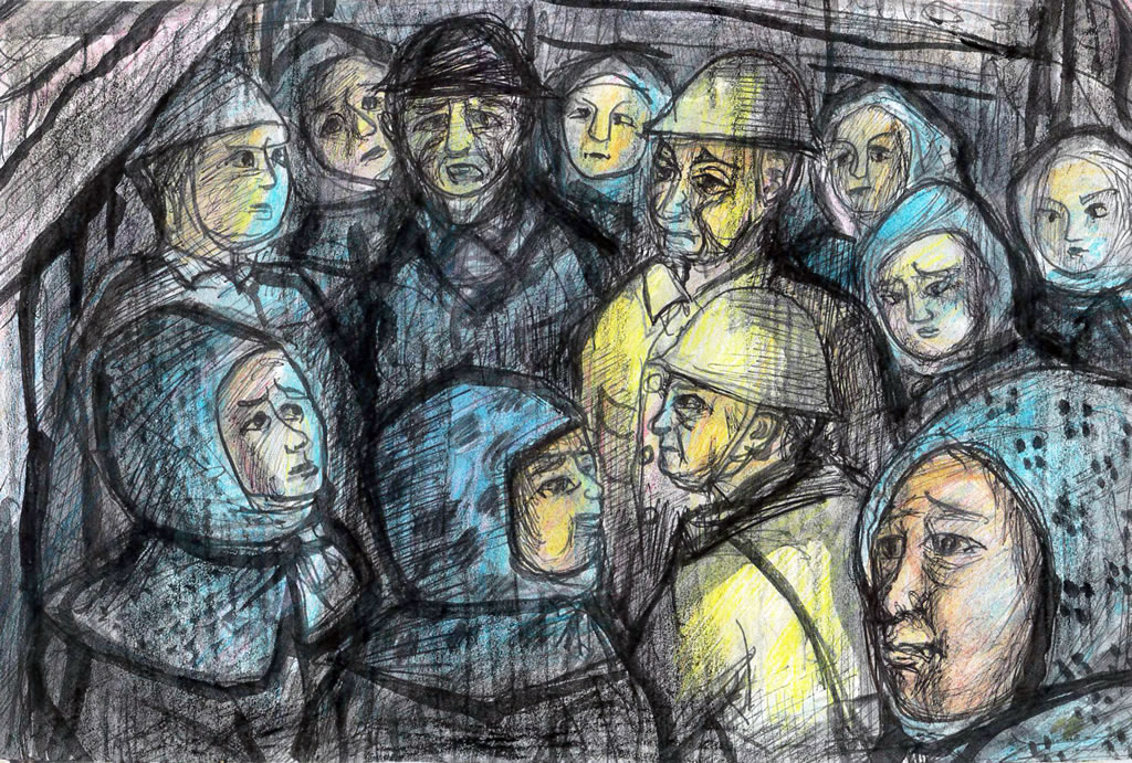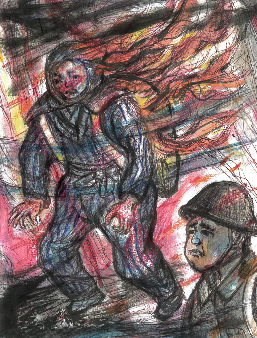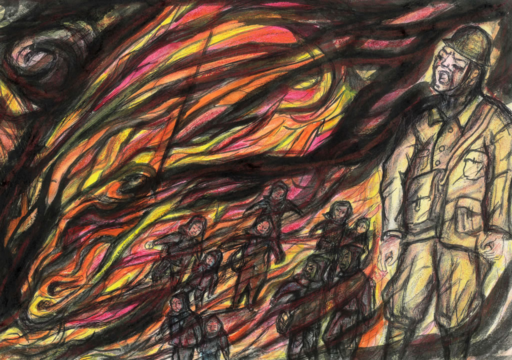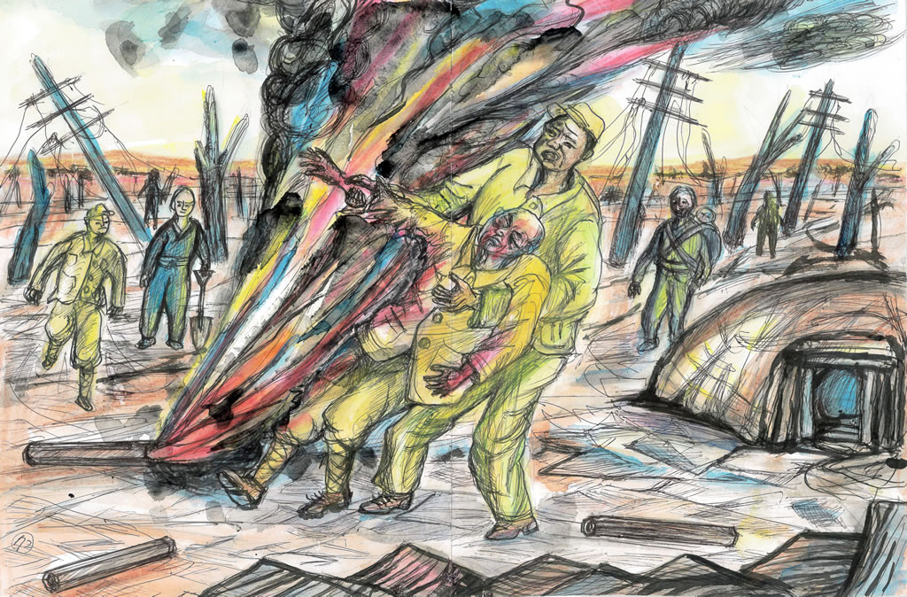 防空壕の中で焼かれる 後日、私の友人が話してくれたことを絵にした。